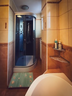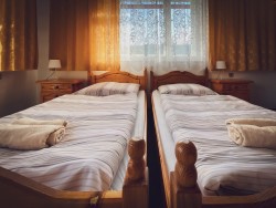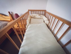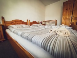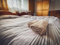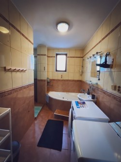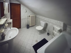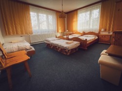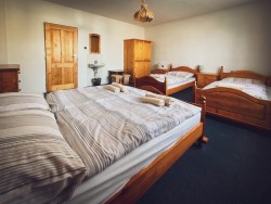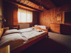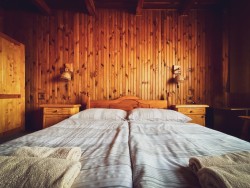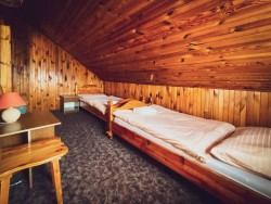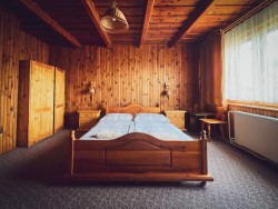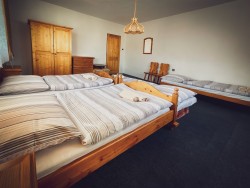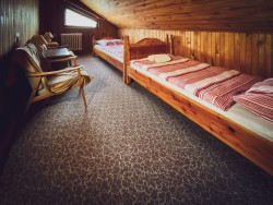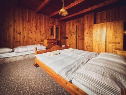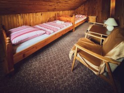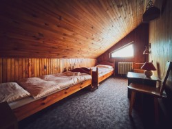 Na druhom poschodí sa nachádzajú 4 spálne (dve dvojlôžkové a dve trojlôžkové), praktická kuchynka a kúpeľňa s vaňou a toaletou.