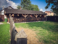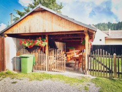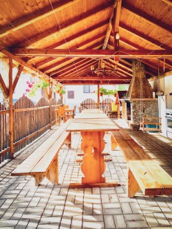 V uzavretom dvore sa nachádza kryté vonkajšie sedenie, výkonný plynový gril, stolný tenis, skákacia trampolína. V sezóne sú k dispozícii bazény a ovečky.